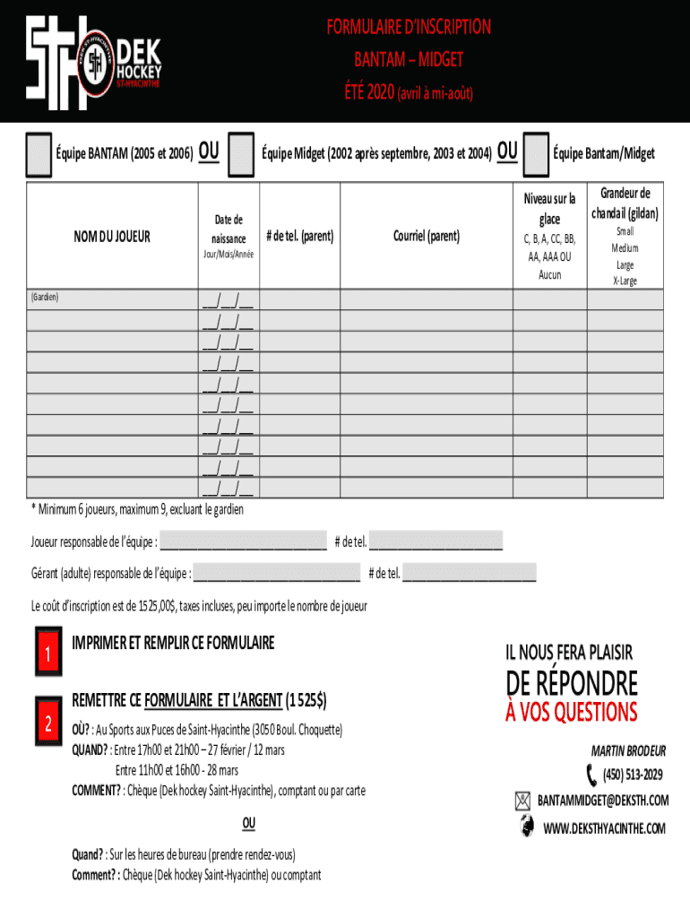 Get the free Formulaire-dinscription-Bantam-Midget-2.pdf - DEK Saint ...