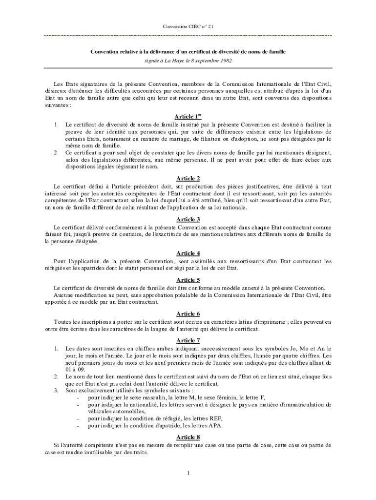 Convention IEC n 21Convention relative la deliverance d\'UN certificate DE diversity den oms DE Camille signed La Have LE 8 September 1982Les Eats signatures DE la present Convention, members DE la