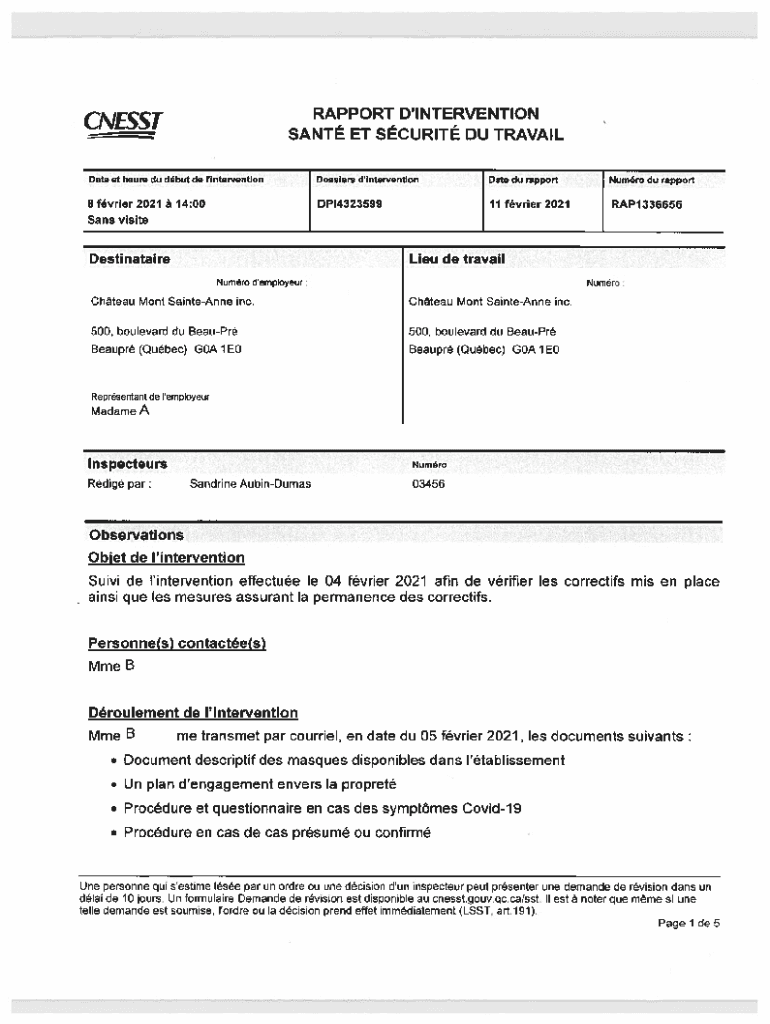 !RAPPORT INTERVENTION SENT ET SECURITY DU TRAVAILCNESST Date ET here dud but de linterventionDossiers dinterventionDate Du rapporteur Du rapport8 frier 2021 14:00 Sans visite0P1432359911 frier 2021RAP1336656DestinataireLieu