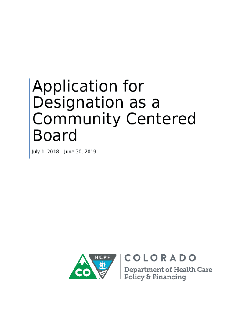 Instructions for the Application for Designation as a Community Centered Board. July 1, 2018June 30, 2019 form
