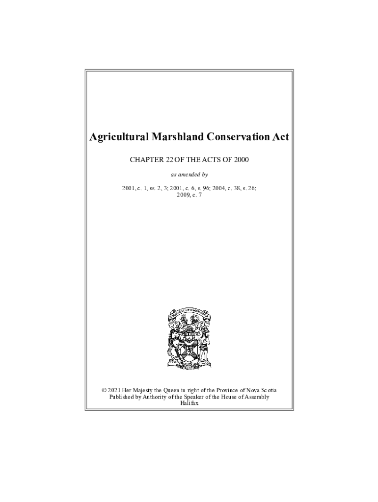 Agricultural Marshland Conservation Act CHAPTER 22 OF THE ACTS OF 2000 as amended by 2001, c. 1, SS. 2, 3; 2001, c. 6, s. 96; 2004, c. 38, s. 26; 2009, c. 7 2021 Her Majesty the Queen in right of