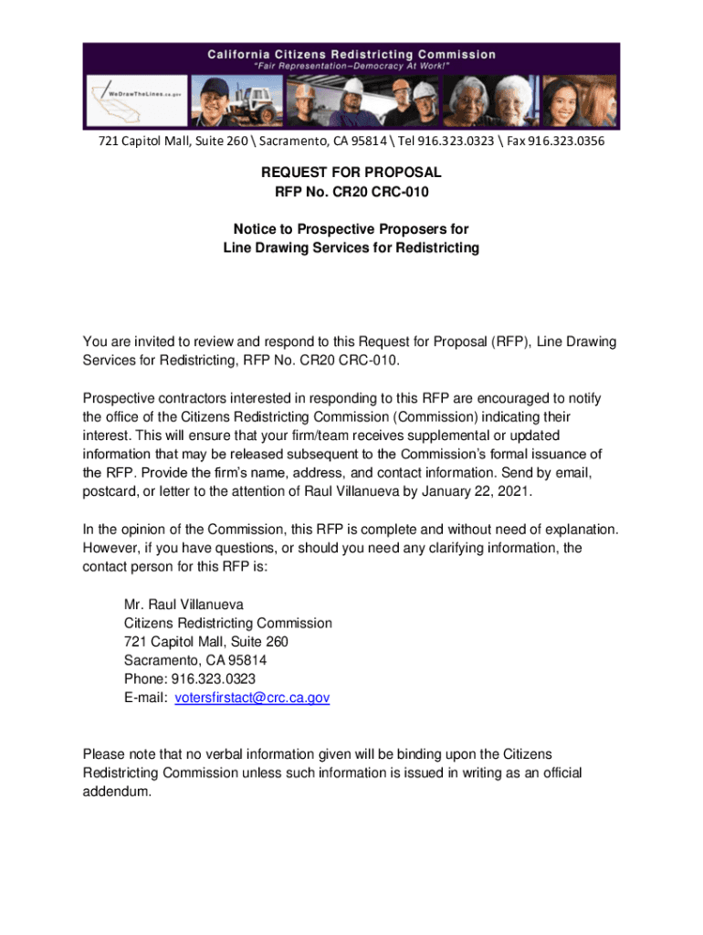 Get the free REQUEST FOR PROPOSAL RFP No. CR20 CRC-010 Notice to ... - wedrawthelines ca
