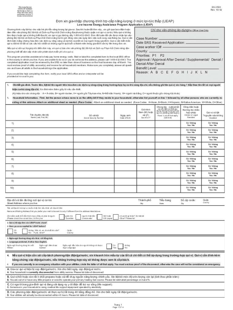 ES3500 Rev. 10/ 02Tiubang Kansas STATE OF KANSAS B Hi v CHV PCI Chang DEPARTMENT OF SOCIAL & REHABILITATION Services in giant chngtrnh trip angling MC ITC THP (LEAP) Low Income Energy Assistance Program
