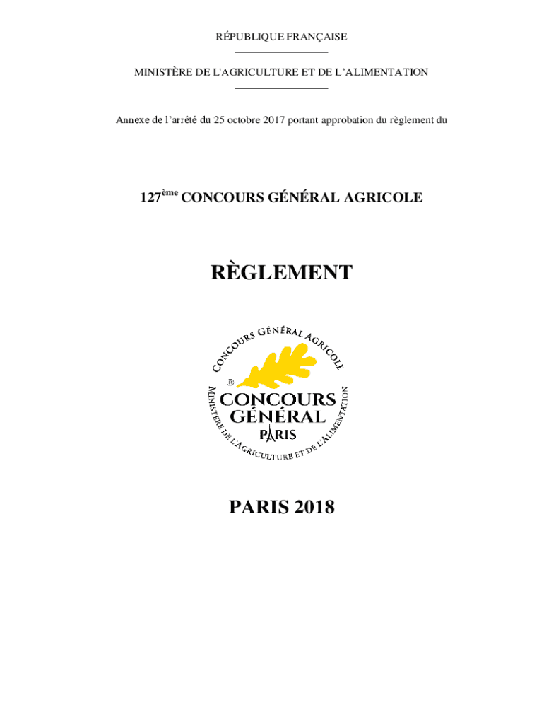 OBLIQUE FRANCHISE ___ MINISTRY DE L\'AGRICULTURE ET DEL ALIMENTATION ___ Annexed de Larry Du 25 October 2017 portent approbation Du element du127me CONCOURSE GENERAL AGRICOLERGLEMENTPARIS 2018TABLE