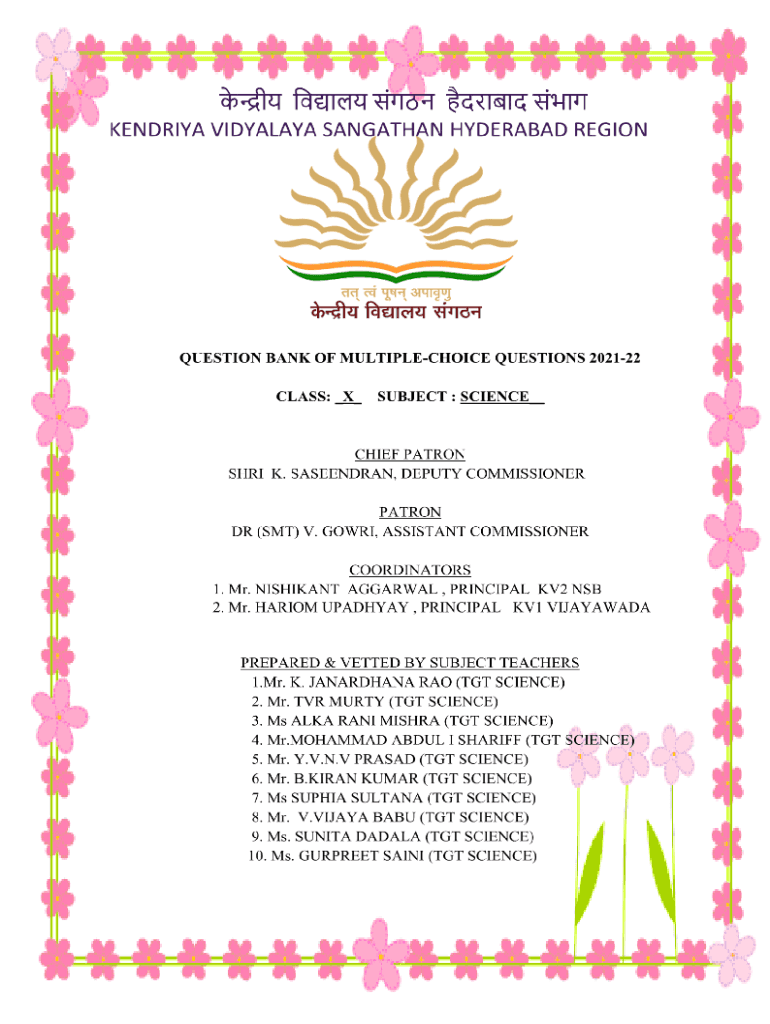 Get the free Name of the Chapter : Chemical Reactions and Equations - KVS RO ...