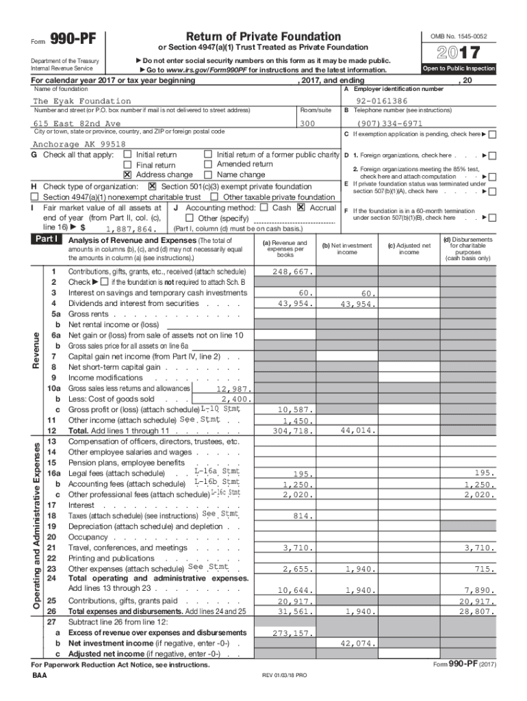 Form990PFDepartment of the Treasury Internal Revenue ServiceReturn of Private Foundation OMB No. 154500522017or Section 4947(a)(1) Trust Treated as Private Foundation a Donor enter social security