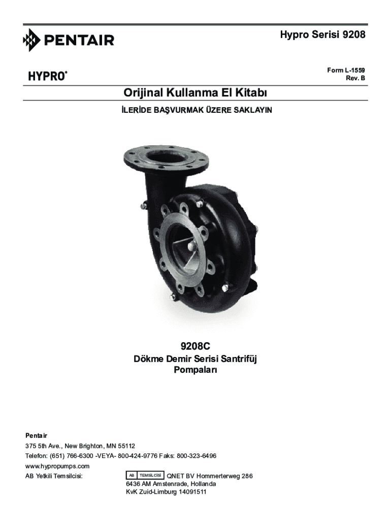 Hydro Series 9208 Form L1559 Rev. Original Juliana El Kit ab VERDE BAVARIA WERE SAKLAYIN9208CDkme Emir Series Strife PompalarPentair 375 5th Ave., New Brighton, MN 55112 Telephone: (651) 7666300 VEGA
