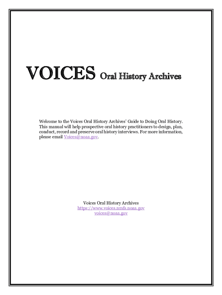 VOICES Oral History Archives Welcome to the Voices Oral History Archives Guide to Doing Oral History. This manual will help prospective oral history practitioners to design, plan, conduct, record
