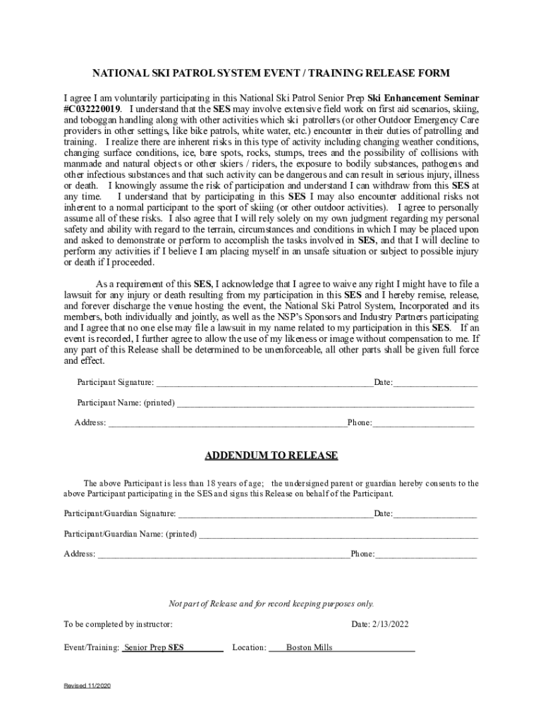 Get the free NATIONAL SKI PATROL SYSTEM EVENT/TRAINING RELEASE FORM I ...