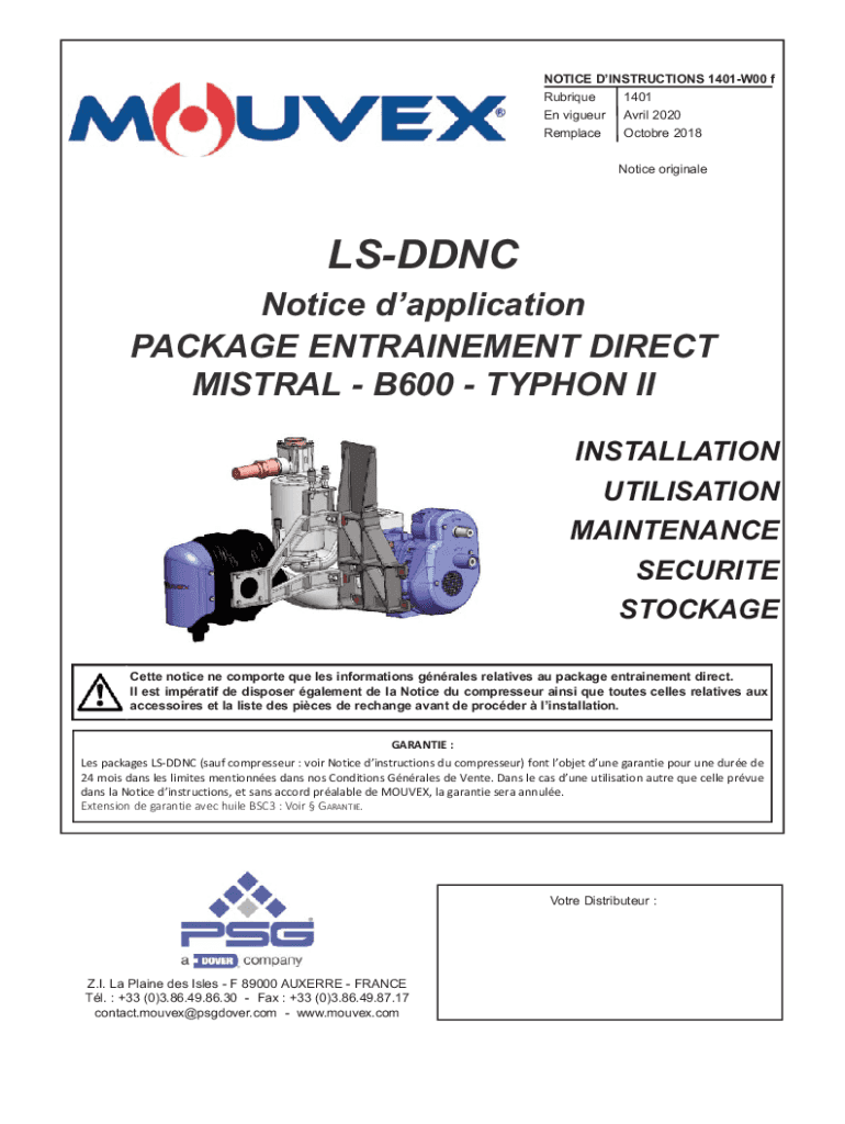 NOTICED INSTRUCTIONS 1401W00 f Rubrique1401En vigueurAvril 2020RemplaceOctobre 2018 Notice originaleLSDDNC Noticed application PACKAGE ENTRAINMENT DIRECT MISTRAL B600 TYPHOON II INSTALLATION Utilization