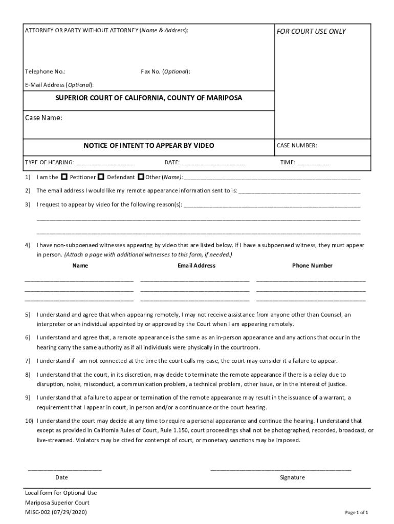 Get the free Notice of Intent to Appear by Video.pub (Read-Only)