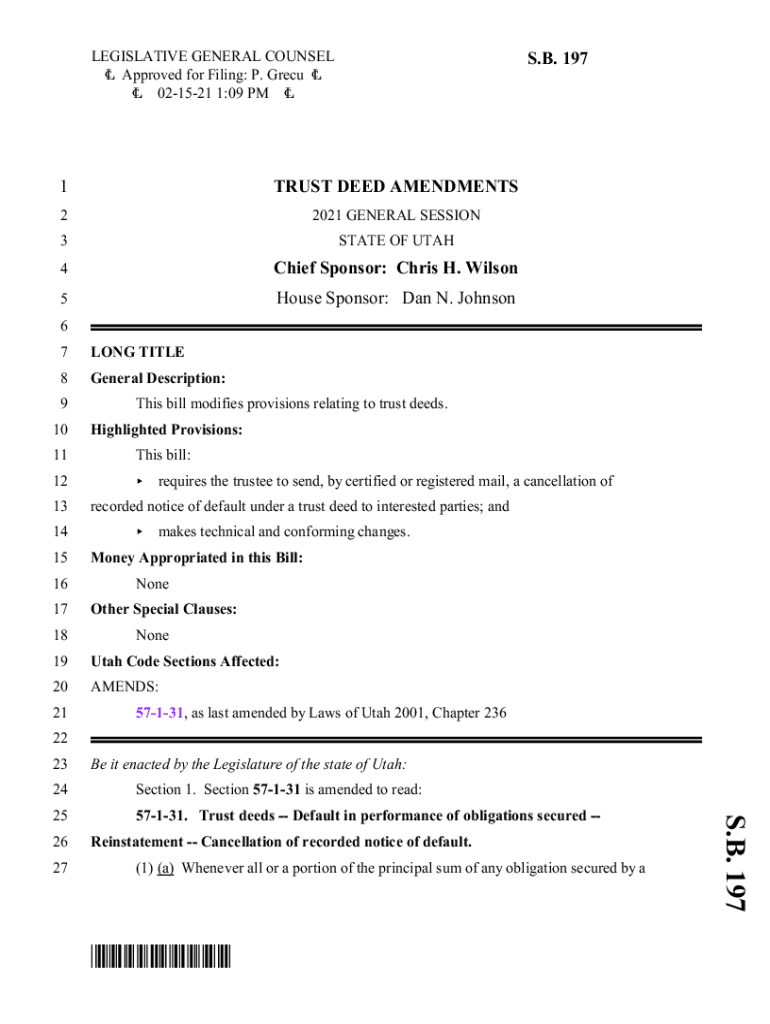 LEGISLATIVE GENERAL COUNSEL 6 Approved for Filing: P. GREC 6 6 021521 1:09 PM 6S. B. 1971TRUST DEED AMENDMENTS22021 GENERAL SESSION3STATE OF UTAH4Chief Sponsor: Chris H. Wilson5House Sponsor: Dan