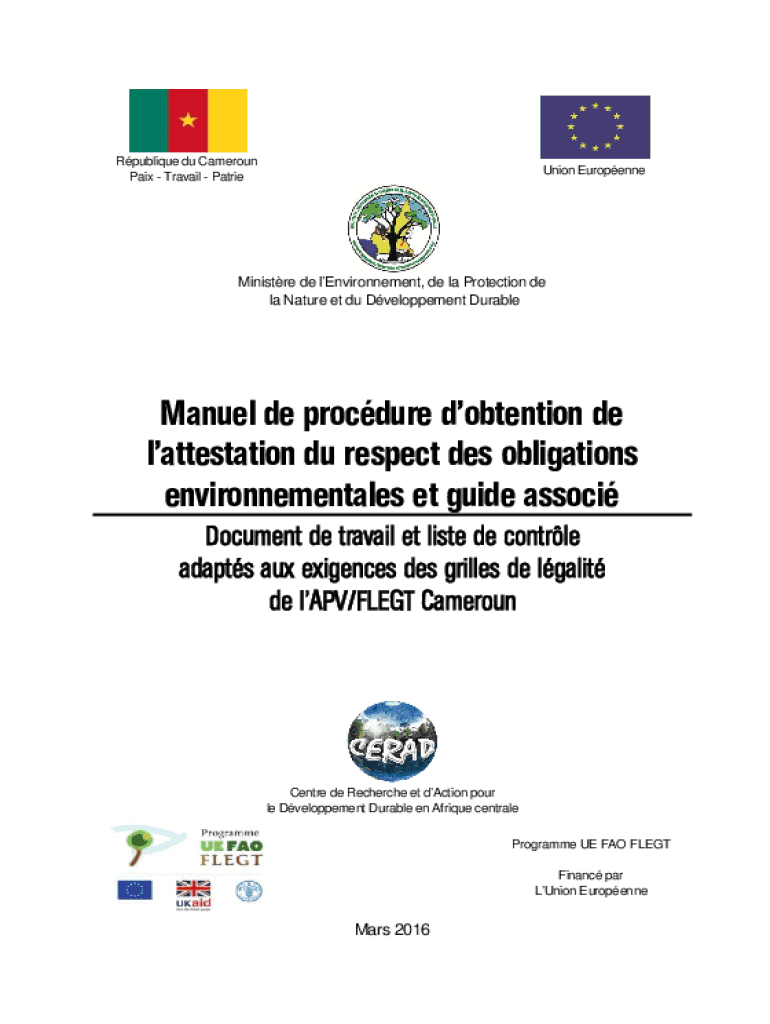Oblique du Cameron Paid Travail La Réunion EuropenneMinistre de environment, DE la Protection DE la Nature et Du Development Durable Manuel de procedure detention DE attestation Du respect DES obligations