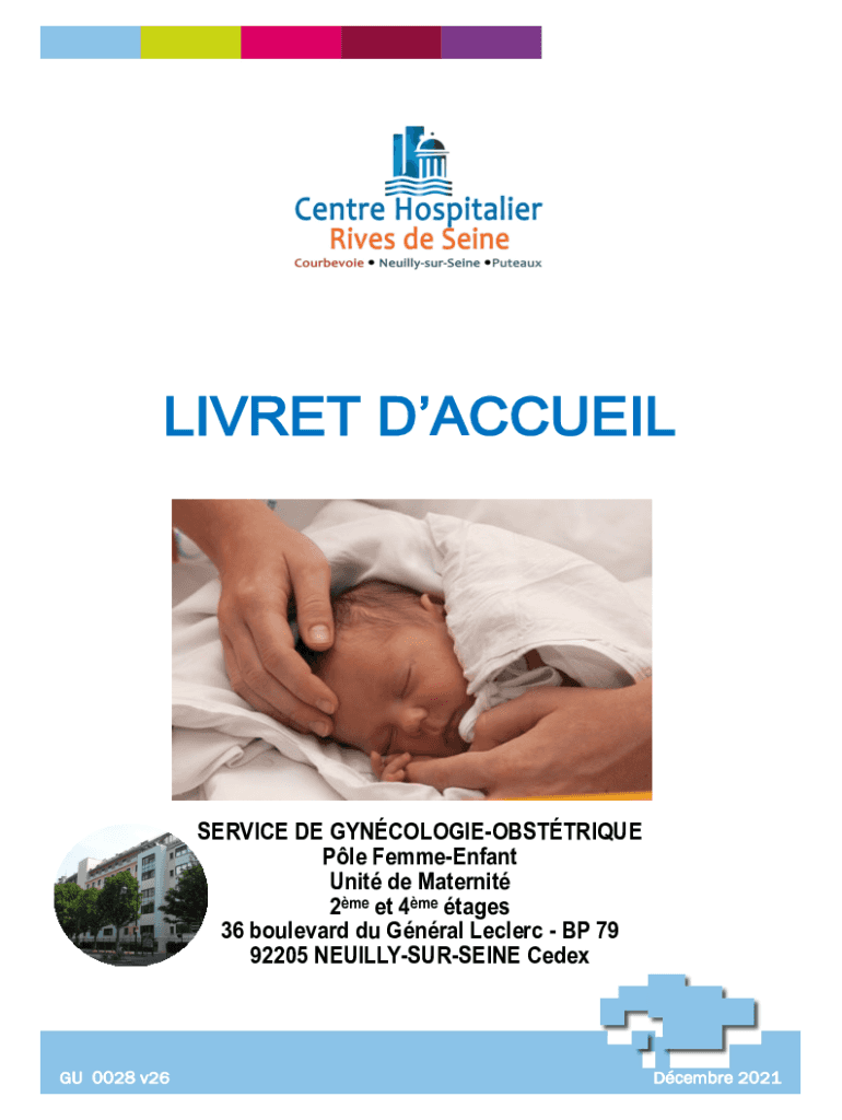 LIVE DACCUEILSERVICE DE GYNCOLOGIEOBSTTRIQUE PLE FemmeEnfant Unit de Maternit 2me et 4me tags 36 boulevard Du Gnarl Leclerc BP 79 92205 Neuilly-sur-Seine CedexGU0028 0028 GU V26v261/16Dcembre 2021