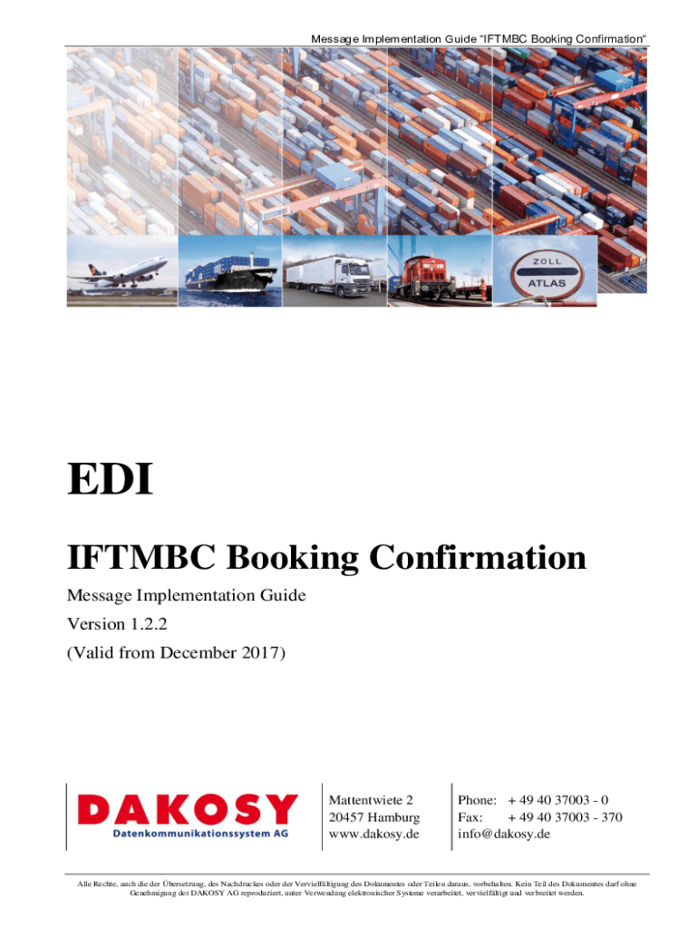 Message Implementation Guide FTC Booking Confirmation EDI FTC Booking Confirmation Message Implementation Guide Version 1.2.2 (Valid from December 2017)Mattentwiete 2 20457 Hamburg www.dakosy.dePhone: