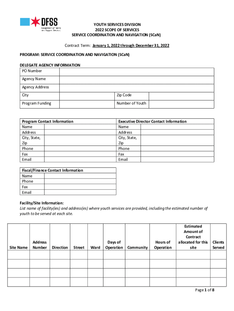 YOUTH SERVICES DIVISION 2022 SCOPE OF SERVICES SERVICE COORDINATION AND NAVIGATION (Scan) Contract Term: January 1, 2022, through December 31, 2022, PROGRAM: SERVICE COORDINATION AND NAVIGATION (Scan)