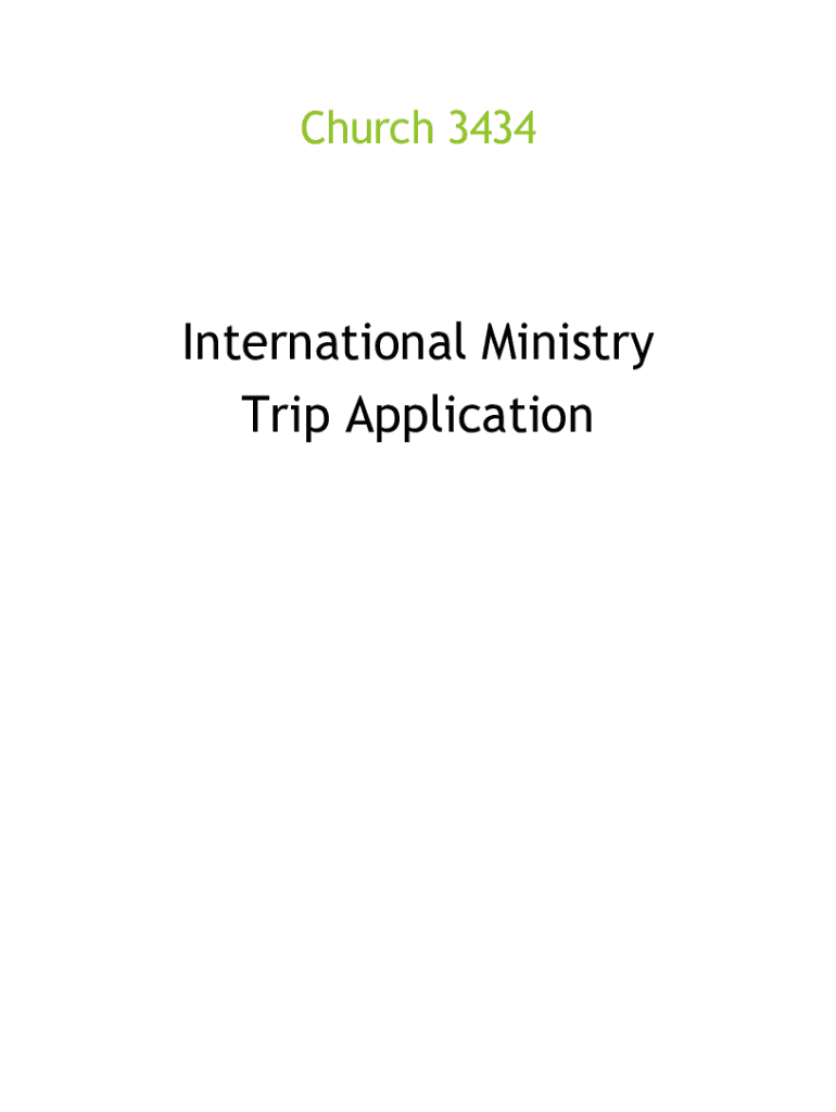 Church 3434International Ministry Trip ApplicationApplication Process Please Read: the following list details the step-by-step process of completing the Ministry Trip Team Member Application and what