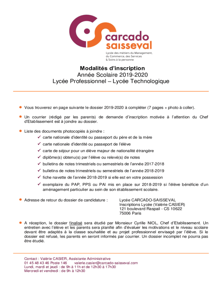 Modality inscription Anne Claire 20192020 Lace Professional Lace TechnologiqueVous trouvère en page private LE dossier 20192020 computer (7 pages + photo collar). UN courier (dig par less parents)