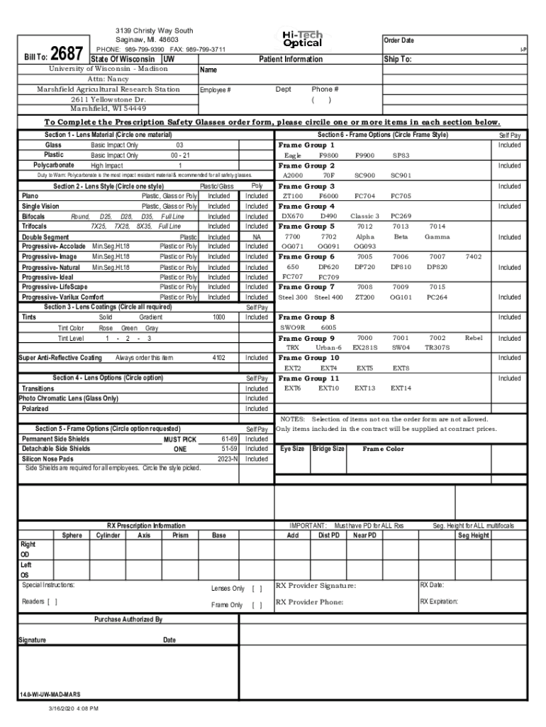 Bill To:26873139 Christy Way South Saginaw, MI. 48603Order Telephone: 9897999390 FAX: 9897993711State Of Wisconsin University of Wisconsin Madison Attn: Nancy Marsh field Agricultural Research Station
