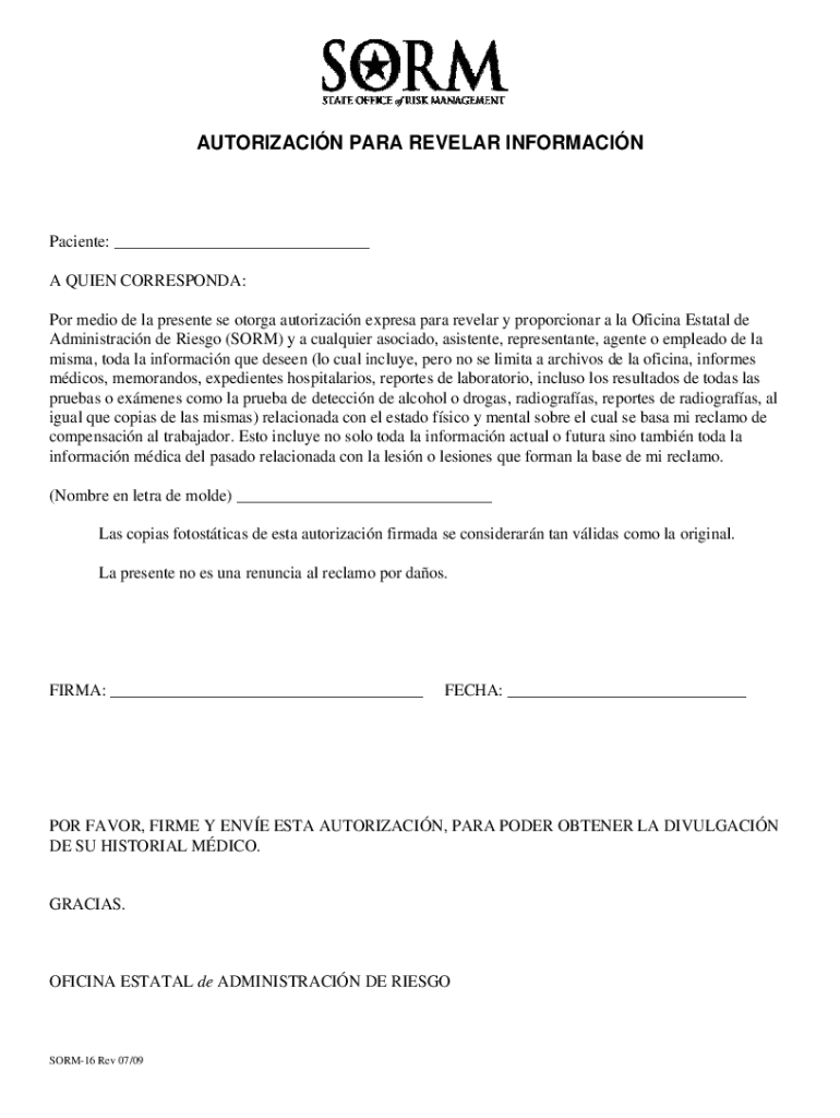 AUTHORIZATION PARA REVELER INFORMACINPaciente: ___ A QUEEN CORRESPOND: POR media DE la present SE Tonga authorization express para reveler y proportional à la Official Estate de Administracin de