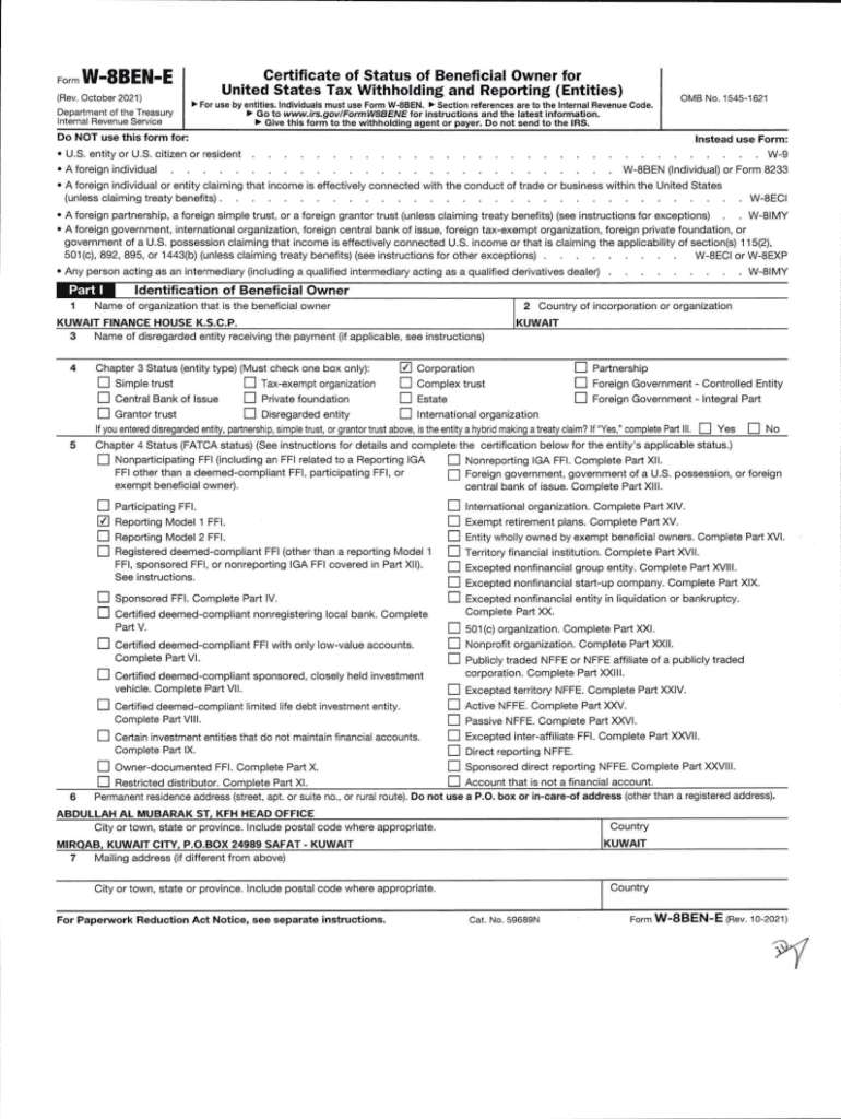 FormW8BENE(Rev. October 2021) Department of the Treasury Internal Revenue ServiceCertificate of Status of Beneficial Owner for United States Tax Withholding and Reporting (Entities) For use by entities.