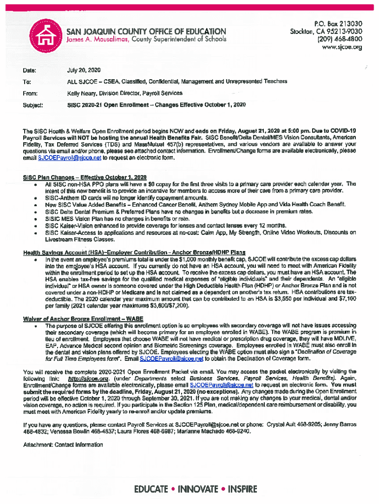 SJ COE/Open Enrollment 202021 Page 2SISC Plans Rate Comparison: DISC PPO Plans Anthem Blue Cross 90% Plan E 80% Plan G 80% Plan L High Deductible Plan HDB (Health Savings Plan HSA) Anchor Bronze Plan