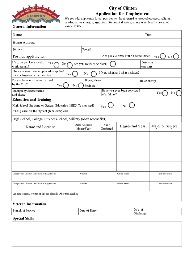 City of Clinton police can be filled out online on the official website of the City of Clinton Police Department or in person at the police station.