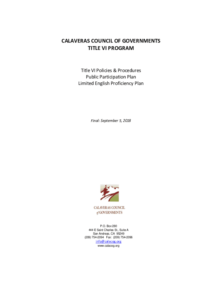 CALAVERAS COUNCIL OF GOVERNMENTS Titles VI Programmable VI Policies & Procedures Public Participation Plan Limited English Proficiency Planning: September 5, 2018P. O. Box 280 444 E Saint Charles