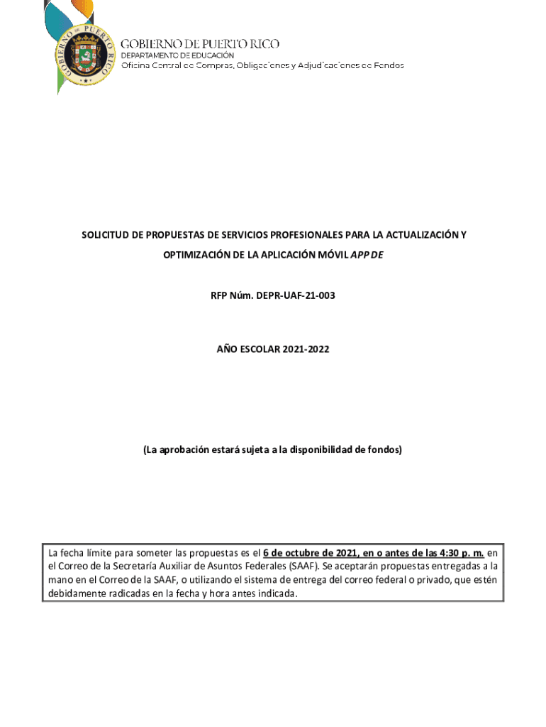 SOLICITED DE PROTESTS DE SERVICES PROFESSIONALS PARA LA ACTUALIZATION Y OPTIMIZATION DE LA APPLICATION EVIL APP DERFP Nm. DEPRUAF21003AO ESCOLAR 20212022(La probation star surety à la disponibilidad