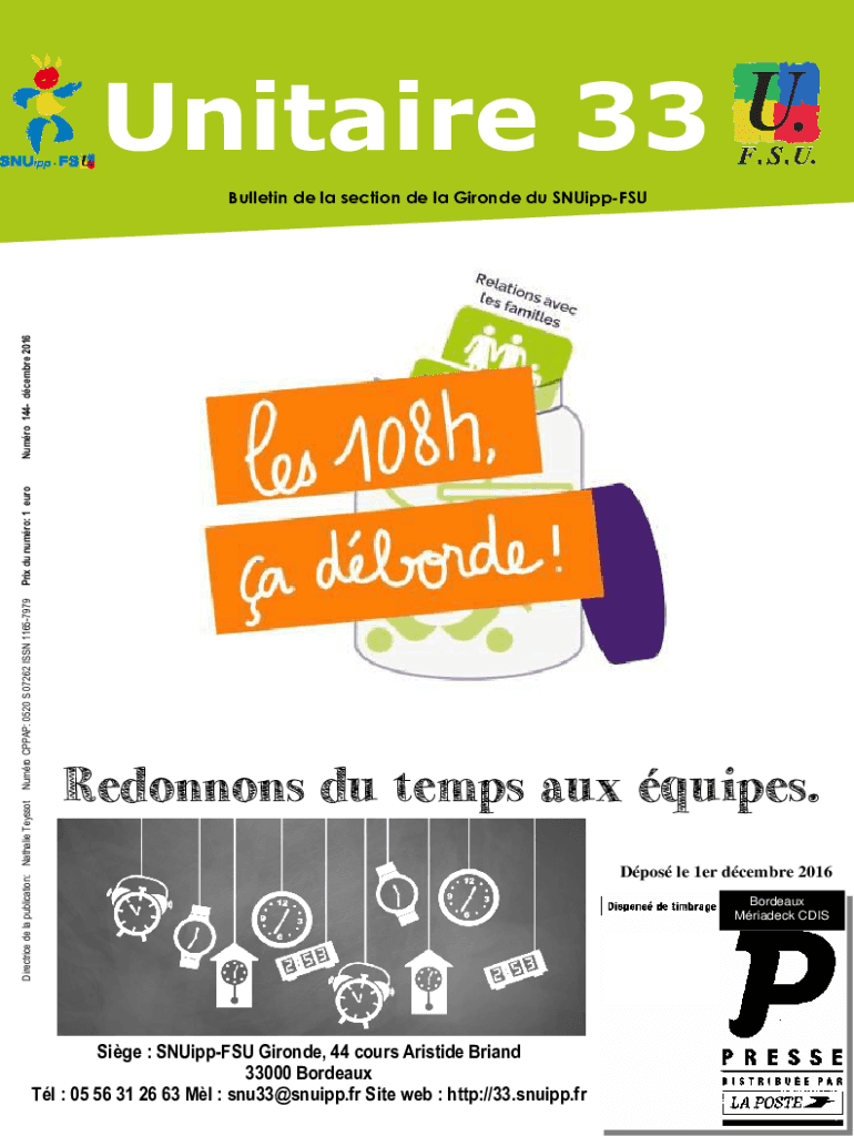 Unitaire 33 - 33snuippfr is typically needed by individuals who are members of the French National Union of Primary Teachers (SNUipp-FSU).