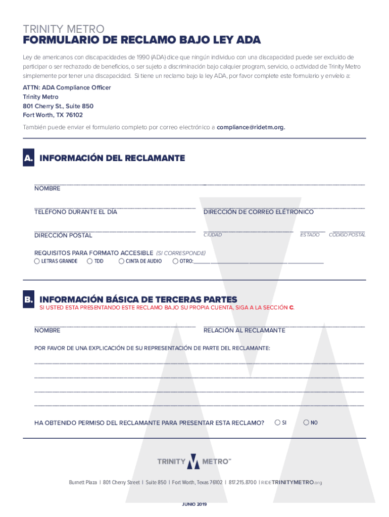 TRINITY METRO FORMULA RIO DE RECLAIM BANJO LED ADA La de Americans con discapacidades de 1990 (ADA) dice Que King individual con RNA discapacidad suede SER exclude DE particular o SER rechazado de
