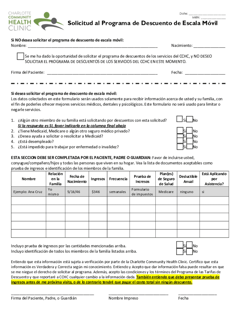Charlotte Community Health Clinic Solicited de Nevis Patients Gracias POR elegy a Charlotte Community Health Clinic Como SU provender DE stencil mica. POR favor, complete ESTA solicited y envela Junto