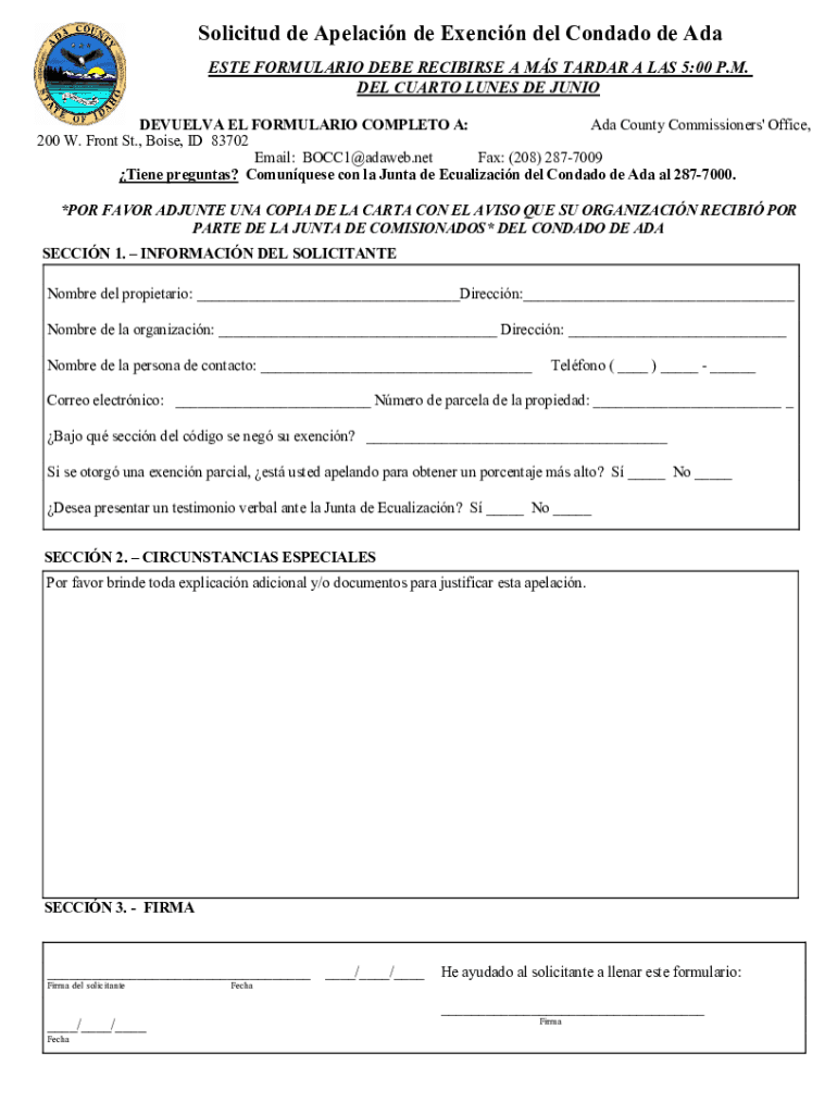 Get the free Solicitud de Apelacin de Exencin del Condado de Ada. Solicitud de Apelacin de Exenci...