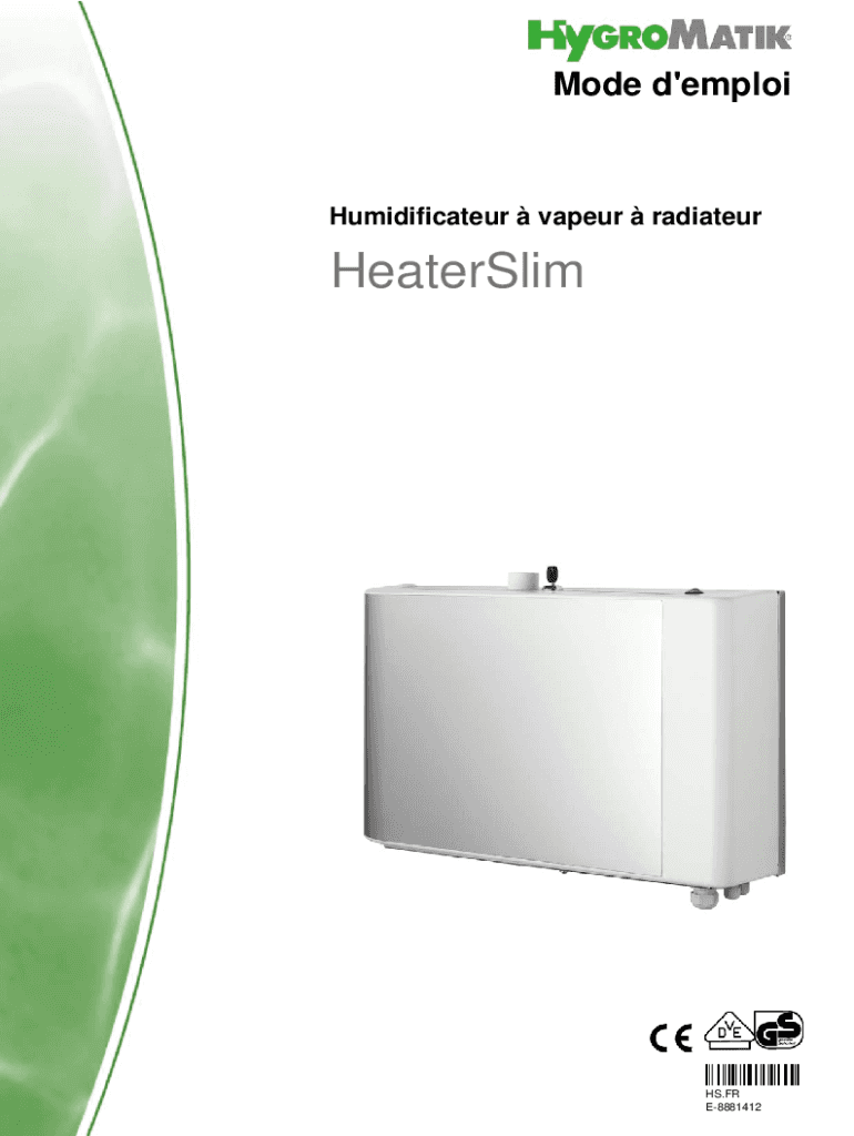Mode d\'emploiHumidificateur paper radiateurHeaterSlimHS.FRS HS.FR E8881412 Copyright Hygrometer GmbH Heaters FR 16.07.2018 Sous serve DE modifications techniques. Attention, tension : né free effected