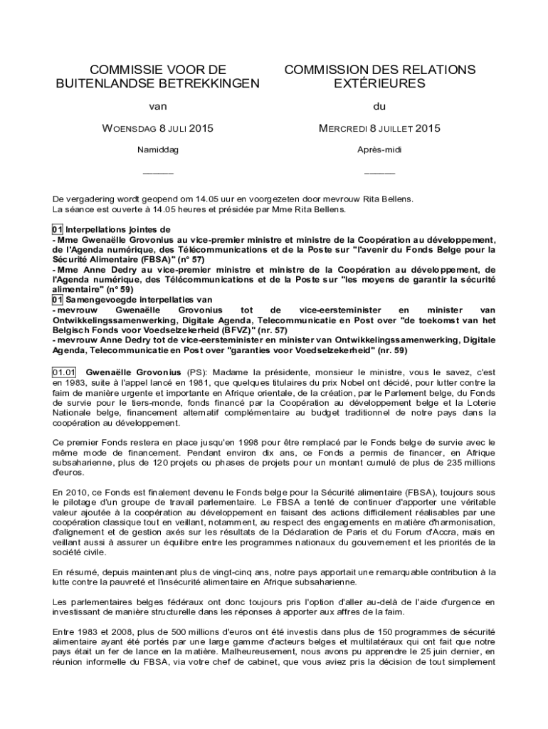 Get the free COMMISSIE VOOR DE COMMISSION DES RELATIONS BUITENLANDSE ...