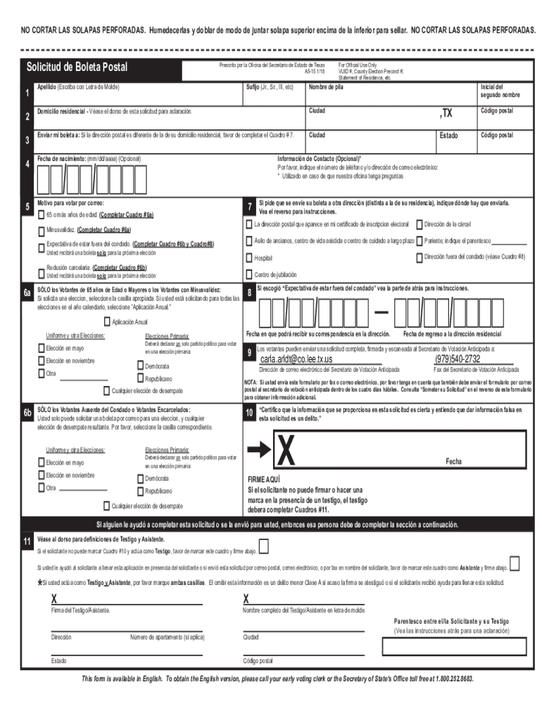 Any registered voter in Texas who wishes to vote by mail is required to file newtoolscirastatetxusuploadpagesolicitud de boleta postal.