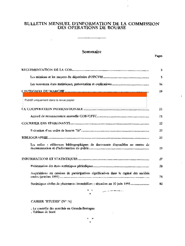 BULLETINMENSUEL INFORMATION DE LA COMMISSION DES OPERATIONS DE BOURSESommaireREGLEMENTATIONDE LA COE! *.....**.......****...×.×....***..........×............×.×..............×........... Les