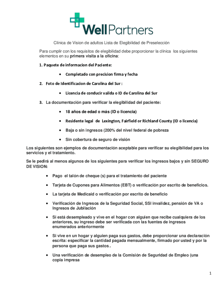 Get the free WellPartners - Clnica de Vision de adultos Lista de Elegibilidad de Preseleccin