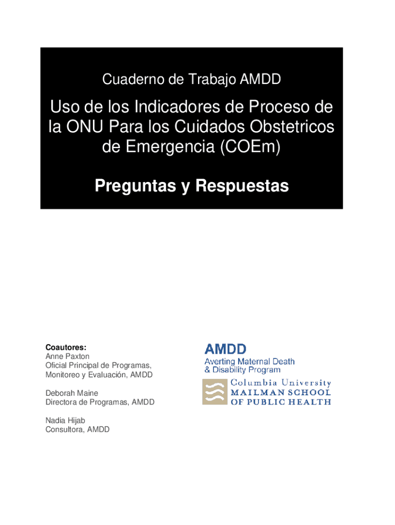 Undergo DE Tribal Adds de Los Indicators de Proceso de la ONU Para Los Doodads Obstetrics de Emergencia (Com) Presents y RespuestasCoautores: Anne Paxton Official Principal de Programas, Monitored