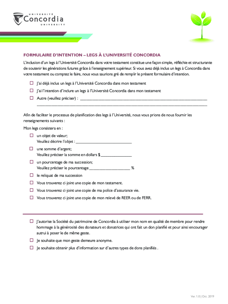Edit your formulaire dintentionlegsluniversit concordia form online
