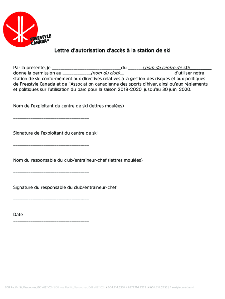 Letter authorization daces la station DE ski Par la present, JE ___Du ___(not Du center DE ski)___ Donne la permission Au ___(not Du club)__ utilizer note station DE ski conferment aux directives
