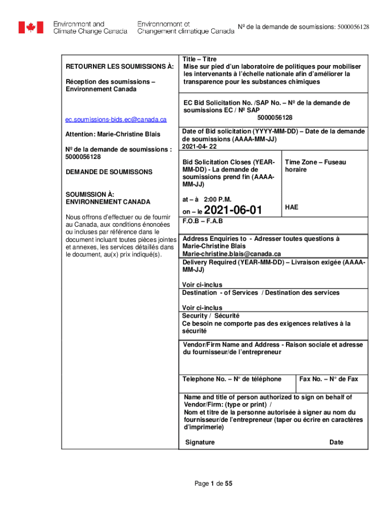 Get the free N de la demande de soumissions: 5000056128 Page 1 de 55 ...
