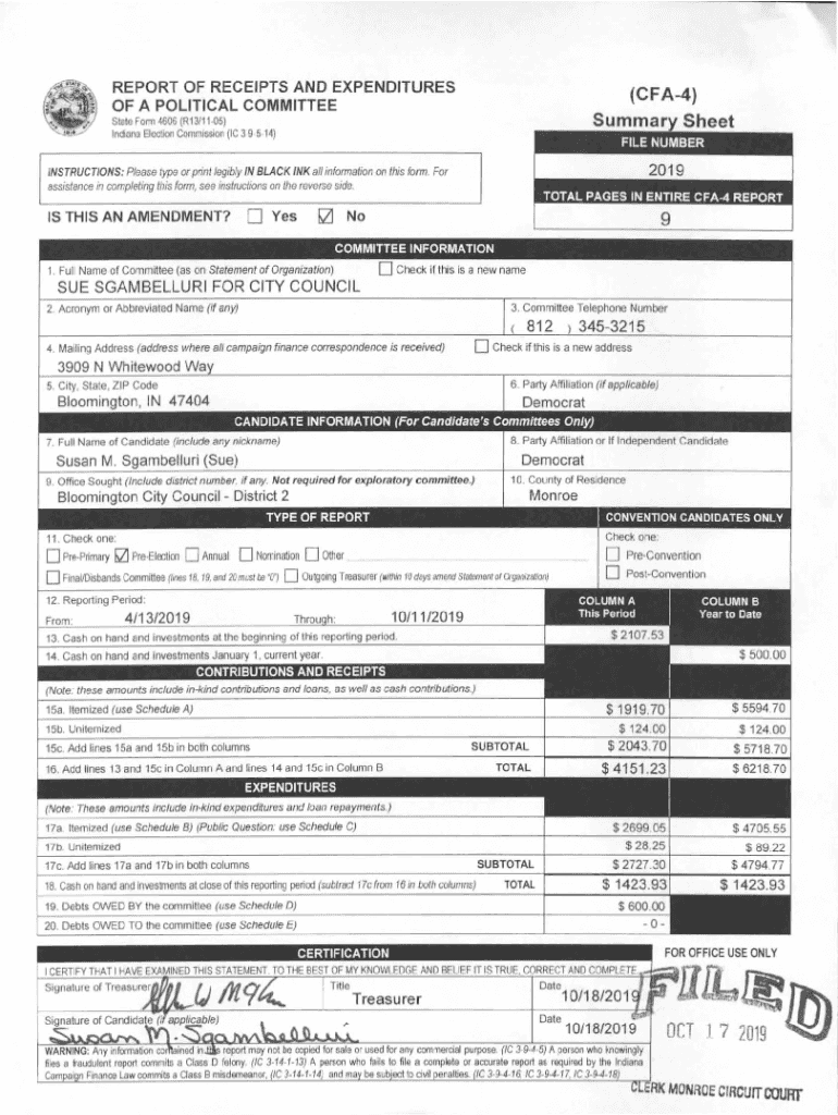 REPORT OF RECEIPTS AND EXPENDITURES OF A POLITICAL COMMITTEE×CFA4×State Few 4606 (R13×11×5)lnd1ana Election Commission (IC 39514×INSTRUCTIONS: Please type or print legibly IN BLACK INK all formation