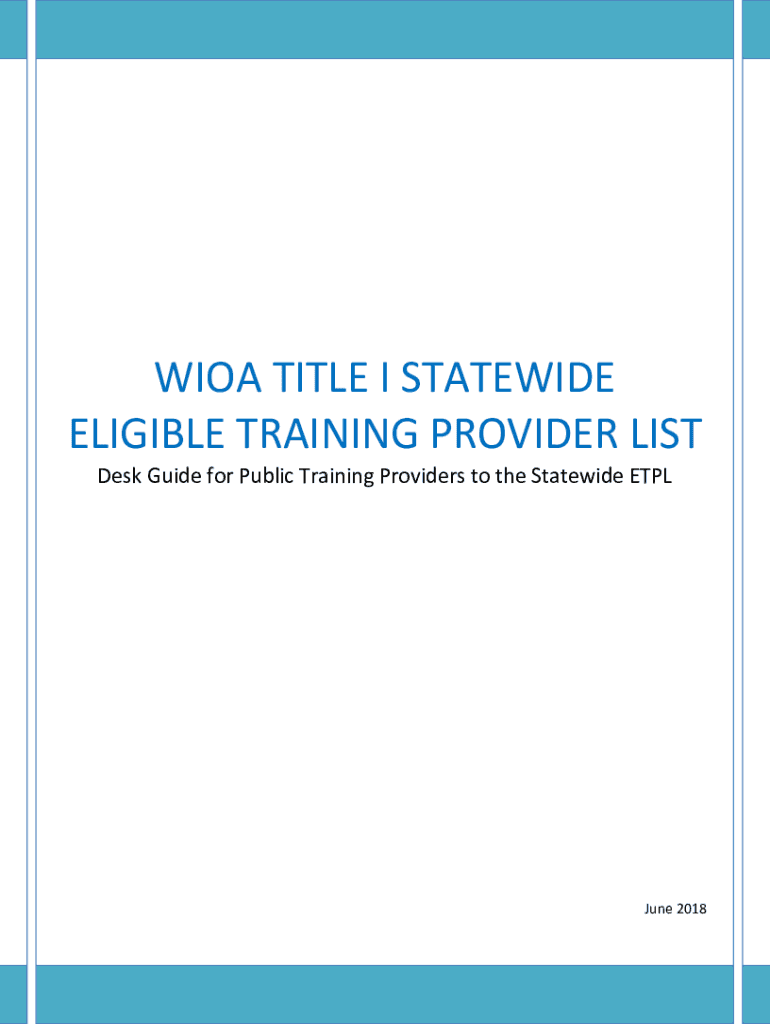WHOA, TITLE I STATEWIDE ELIGIBLE TRAINING PROVIDER LIST Desk Guide for Public Training Providers to the Statewide Enplane 2018Desk Guide for Public Training Providers to the Statewide Malcontents