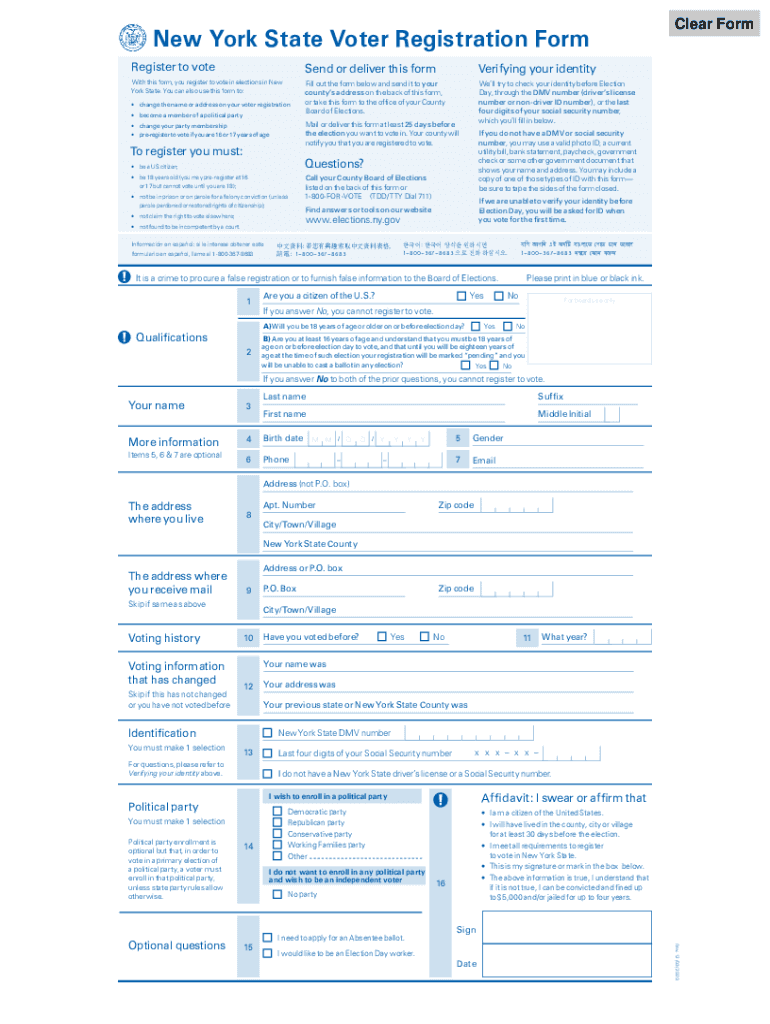 Clear Former York State Voter Registration Form Register to voted or deliver this formVerifying your identityWith this form, you register to vote in elections in New York State. You can also use this