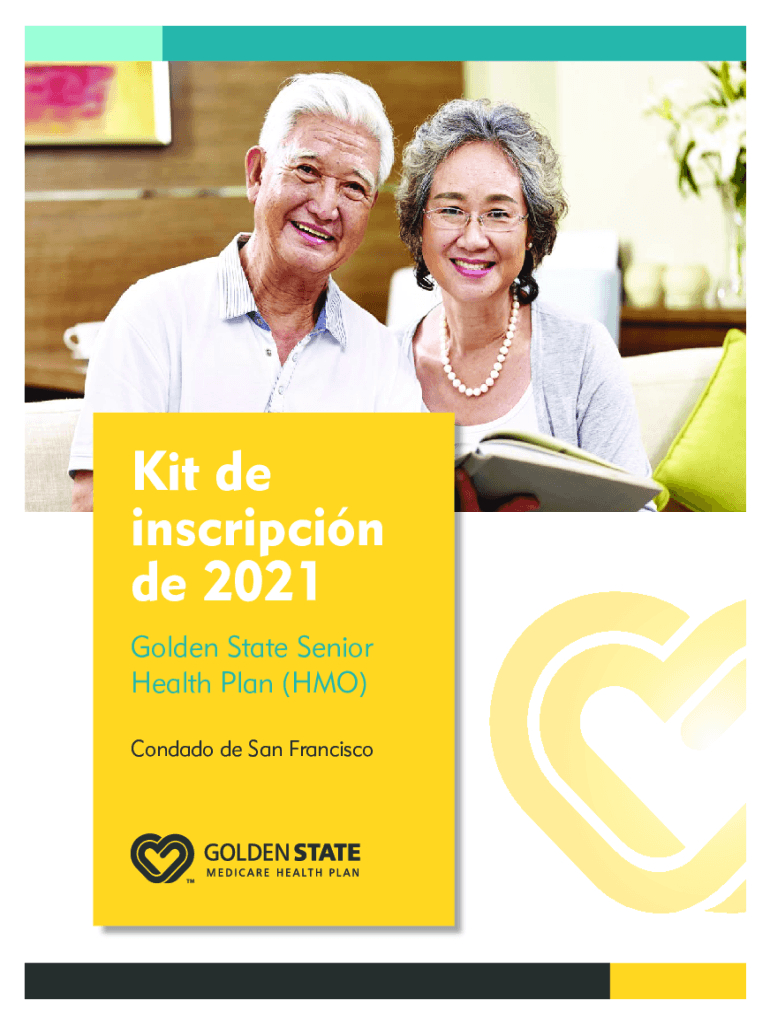 Kit DE inscription DE 2021 Golden State Senior Health Plan (HMO) Condado de San Francisco CMO USER ESTER FILLET Le agradecemos POR coarse UN tempo para render America de Golden State Medicare Health