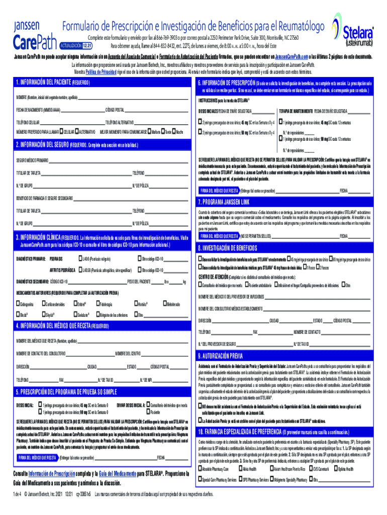 Formulation de Prescripcin e Investigation de Beneficios para El Rheumatology Complete ester formulation y envelop POR fax all 8667693903 o POR core postal a 2250 Perimeter Park Drive, Suite 300,