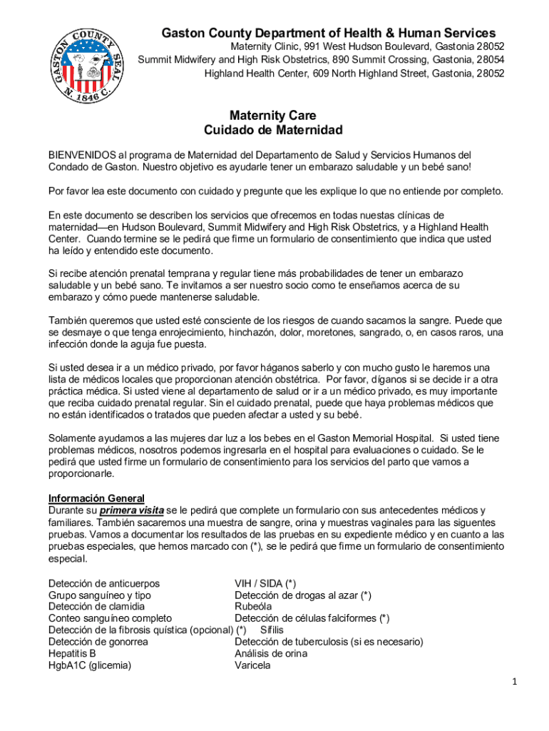Gaston County Department of Health & Human ServicesMaternity Clinic, 991 West Hudson Boulevard, Gastonia 28052 Summit Midwifery and High Risk Obstetrics, 890 Summit Crossing, Gastonia, 28054 Highland