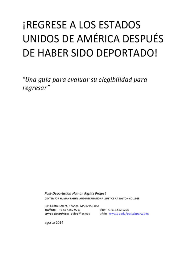 REGRESEALOSESTADOS UNIDOSDEAMRICADESPUS DEHABERSIDODEPORTADO! Unaguaparaevaluarsuelegibilidadpara regresarPostDeportationHumanRightsProjectCENTERFORHUMANRIGHTSANDINTERNATIONALJUSTICE.