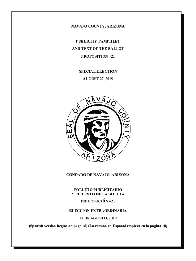 NAVAJO COUNTY, ARIZONA PUBLICITY PAMPHLET AND TEXT OF THE BALLOT PROPOSITION 421 SPECIAL ELECTION AUGUST 27, 2019CONDADO DE NAVAJO, ARIZONA FILLET PUBLICITARIO Y EL TEXT ODE LA BOLE TA PROPOSITION